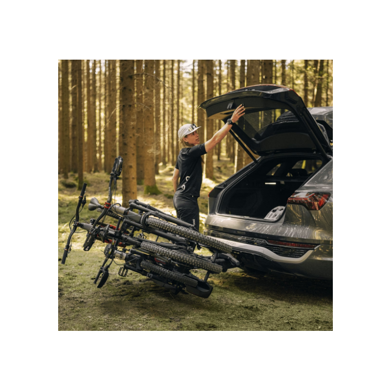Capaz de transformarse de portabicicletas de 2 a 3 bicicletas utilizando un adaptador adicional, el Thule EasyFold 3 es la opción preferida para familias. Su gran separación y distancia entre ejes permite acomodar bicis de gran tamaño y eléctricas, por lo que puedes traerte las de toda la familia o grupo de ciclismo.