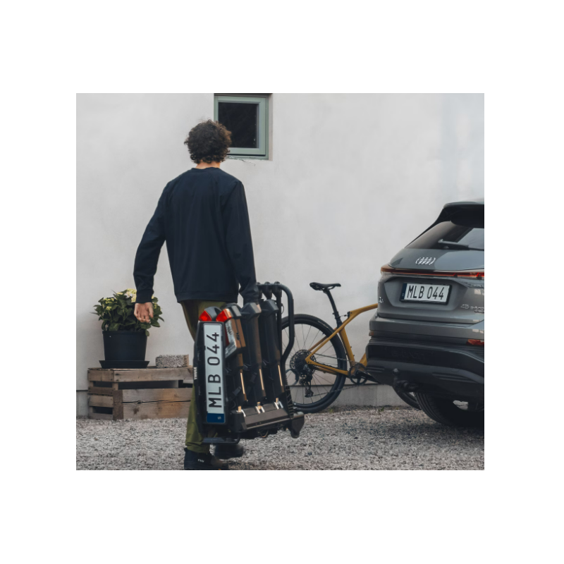 Capaz de transformarse de portabicicletas de 3 a 4 bicis utilizando un adaptador adicional, el Thule EasyFold 3 es la opción preferida para familias. La gran distancia entre ejes se adapta a bicicletas más grandes y eléctricas, por lo que puedes llevar las bicis de toda la familia o de tu grupo de ciclismo.